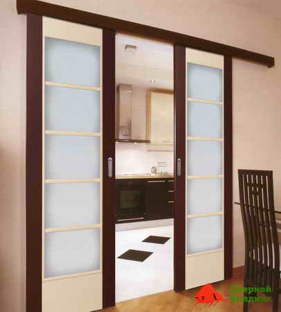 Украшение межкомнатных дверей вставками из матового или прозрачного стекла уже давно стало классикой. Такое сочетание стекла и поверхности ламинированного МДФ, имитирующего текстуру и цвет натурального дерева, делает шкаф более легкой, оригинальной и привлекательной. Иногда стекло украшено фьюзингом, цветным или прозрачным рисунком, а зачастую вставки не нуждаются в таком дополнительном украшении.